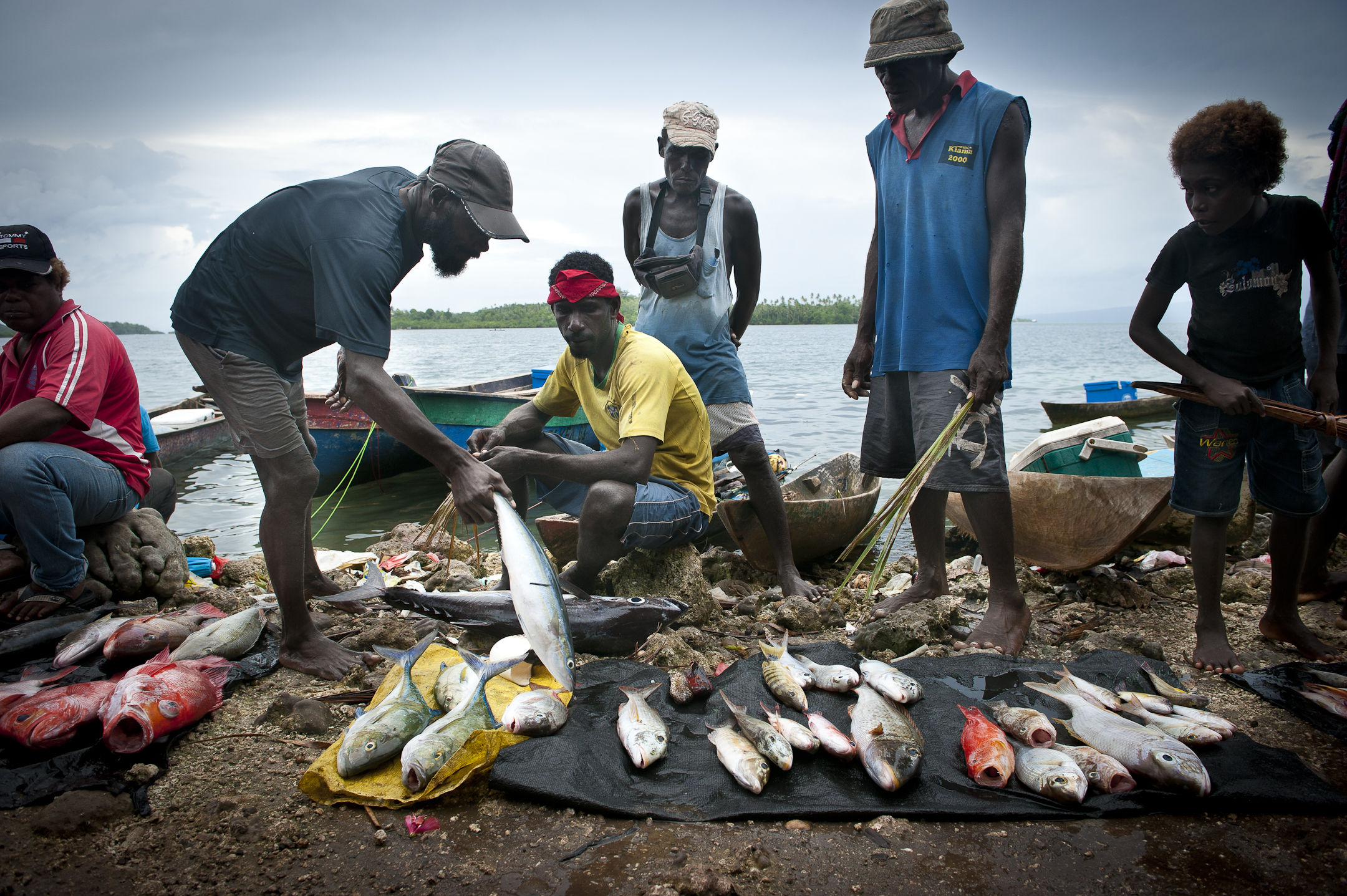 Coastal people in the Solomon Islands rely on marine resources for their subsistence livelihoods. These fishermen sell their artisanal catch at the public market on Ghizo Island.